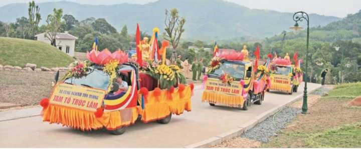 Con đường Hoằng dương Phật pháp của các vị TỔ Trúc lim Yên Tử cố thể được trải theo cả chiều rộng và chiều dài bên mạri lầy Yên Tử, bởi con đường này là con đường truyền đạo. Việc xác dính con đường này được hình thành theo dấu tích của nhũng nơi truyển đạo lằ những ngôi diùa bên lầy Yên Tử. Điển hình có chùa Vĩnii Nghiêm, đuực gọi là chốn lổ, nơi thờ chính ba vị Ĩổ sư của Thiền phái Trúc Lâm Yên TỀ Phật Hoàng Trẩn Nhân long,Thiển sư Pháp Loa và Thiển sư Huyền Quang, lầy Yên Tử đuực xác định gổm hệ thống dí tích lịch sử, văn hóa, danh lam thắng cảnh nằm chỏ yếu trong các huyện Sơn Động, Lục Ngạn, Lục Nam, Yên Dũng và thằn li phố Bắc Giàng. Đến nay, dưới chân núi sườn lây Yên Tử để kết nổi với ẩnh non thiêng Yên Tử, nơi Phật Hoàng Trẩn Nhân 13ng dã qua đời năm Mậu Thân (1308) tại am Ngọa Vân núi Yên Tử, tinh Bắc Giang đă xây dựng điểm dừng chân với công trình lớn đồng bọ trong hệ thong du lịch tâm linh sinh thái lay Yên Tử dưới chân núi là cổng chào đốn, chùa Hạ, chùa Tìiượng và hệ thống cáp treo. Các công ừình khác trong dự án tiếp tục hoàn thiện theo từng gíaỉ đoạn.