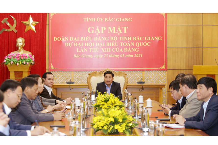 (BGĐT)-Chiều 23/1, Bí thư Tỉnh ủy, Chủ tịch HĐND tỉnh, Trưởng Đoàn đại biểu Đảng bộ tỉnh Bắc Giang dự Đại hội đại biểu toàn quốc lần thứ XIII của Đảng Dương Văn Thái tổ chức buổi gặp mặt các đại biểu của Đoàn trước Đại hội.