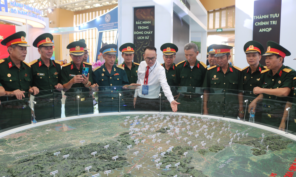 Đoàn sĩ quan cao cấp khu vực Hiệp Hòa tham quan không gian trưng bày của tỉnh Bắc Ninh. |