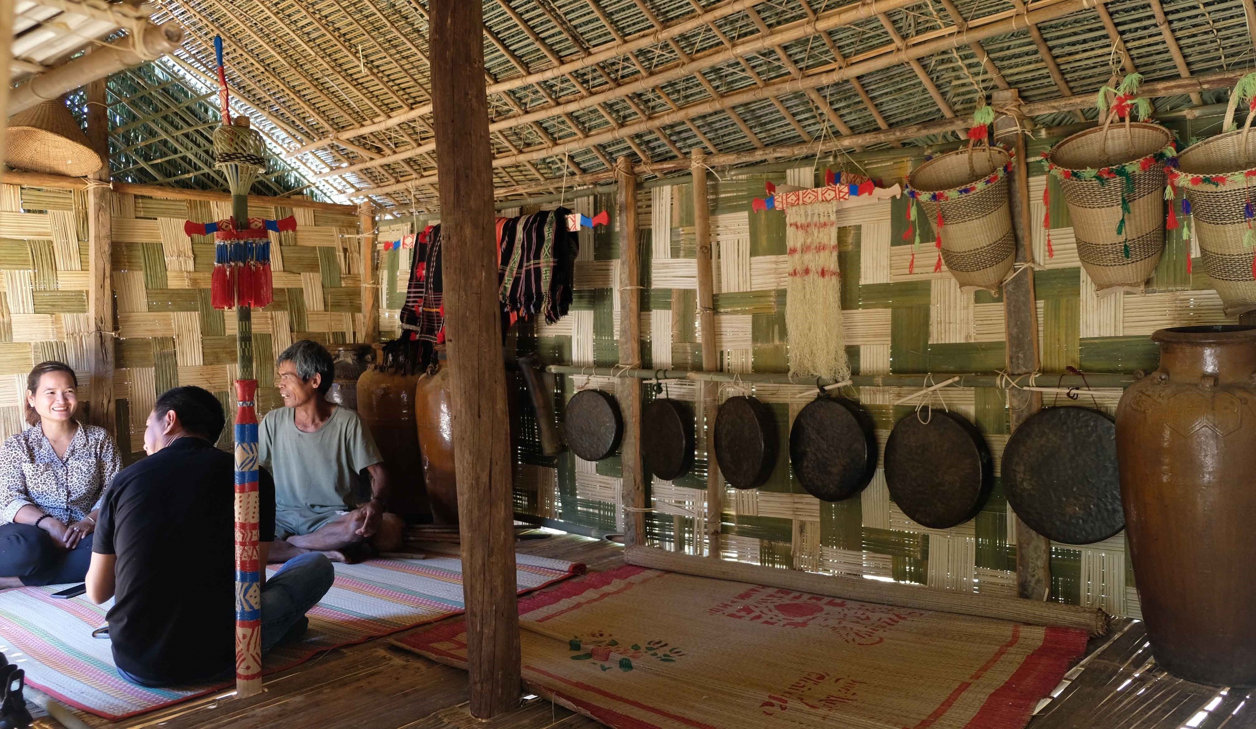 Trong khi đó, tại tổ 42, phường 2 Bảo Lộc, những khung dệt từng bị bỏ quên nay được dựng lại giữa nhà sàn. Mái nhà sàn truyền thống hơn 2 năm qua không chỉ là không gian sinh hoạt cộng đồng mà còn là không gian nghề truyền thống, giới thiệu sản phẩm cho du khách trong và ngoài địa phương.
