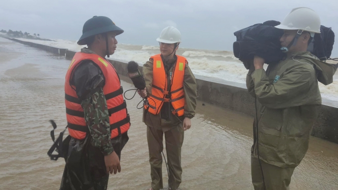 Nhóm phóng viên tiếp cận hiện trường sạt lở do thiên tai ở Cửa Trời, bản Cợp, xã Hướng Phùng (Hướng Hóa, Quảng Trị).